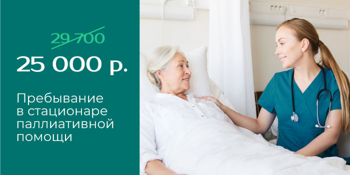 Комплексная услуга «Наблюдение пациентов в палате паллиативной помощи» по акции – 25 000 (вместо 29 700) рублей в сутки.