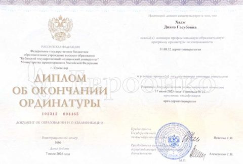 2025Ординатура по специальности «Дерматовенерология», Кубанский государственный медицинский университет