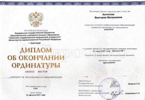 Ассистент кафедры онкологии. ФГБОУ ВО "Кубанский государственный медицинский университет"