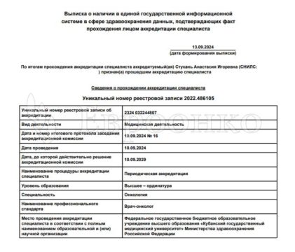 Была на приёме 06.08.25г. Персонал на регистратуре очень приветливый, всё доходчиво объяснили. Врач Стукань Анастасия Игоревна внимательно выслушала, посмотрела все заключения и анализы. Ответила н...