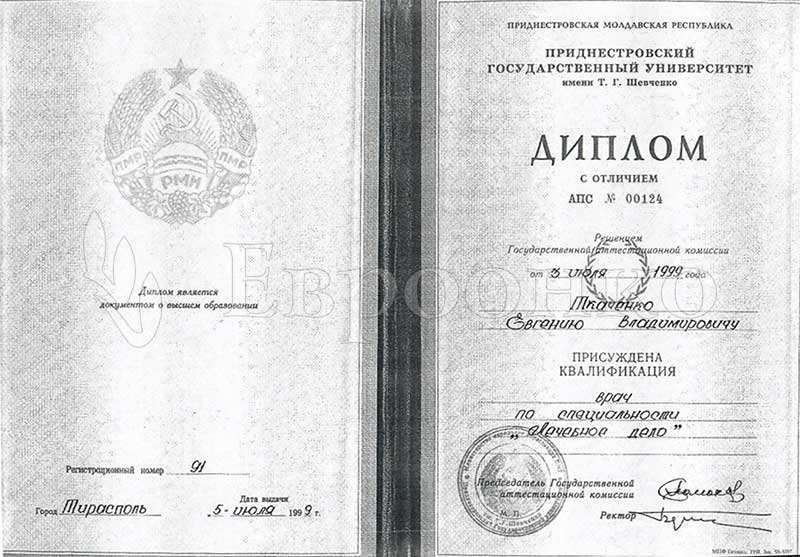 1999Диплом по специальности «Лечебное дело», Приднестровский государственный университет им. Т.Г. Шевченко