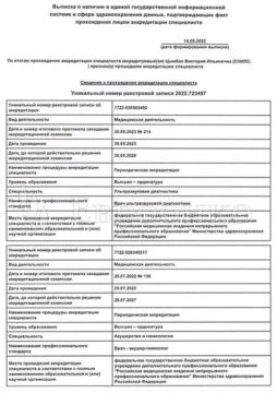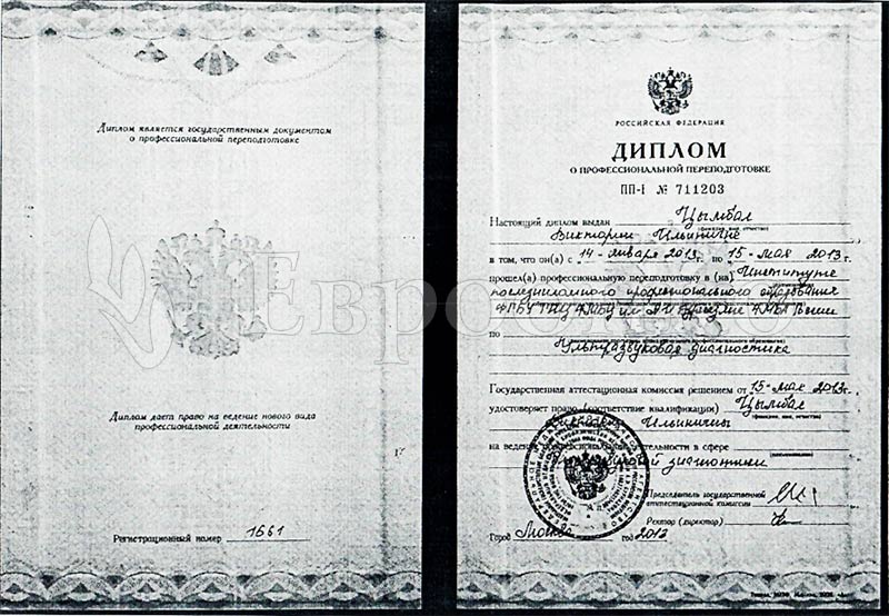 2013Профессиональная переподготовка по специальности «Ультразвуковая диагностика», Федеральный медицинский биофизический центр им. А.И. Бурназяна