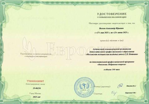 2025Повышение квалификации по специальности «Онкология. Избранные вопросы», Московская медицинская академия имени С.П.Боткина