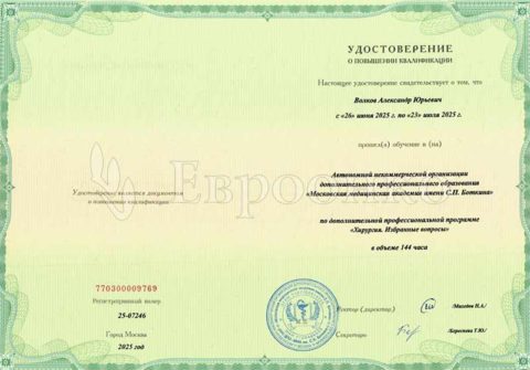 2025Повышение квалификации по специальности «Хирургия. Избранные вопросы», Московская медицинская академия имени С.П.Боткина