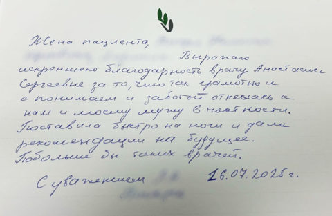 Побольше бы таких врачей 115191, Москва, Духовской переулок, 22Б 350015, Краснодар, Северная ул, 315 198035, Санкт-Петербург, Межевой канал, д.4, лит.А 603155, Нижний Новгород, Большая Печёрская ул., д.26 16 июля, 2025 в 16:40 Санкт-Петербург Метки: Марьенко Анастасия Сергеевна ЕвроонкоЕвроонко Выражаю искреннюю благодарность врачу Анастасии Сергеевне за то, что так грамотно и с пониманием и заботой отнеслась к нам и моему мужу в частности. Поставила быстро на ноги и дала рекомендации на будущее. Побольше бы таких врачей. С уважением. 415